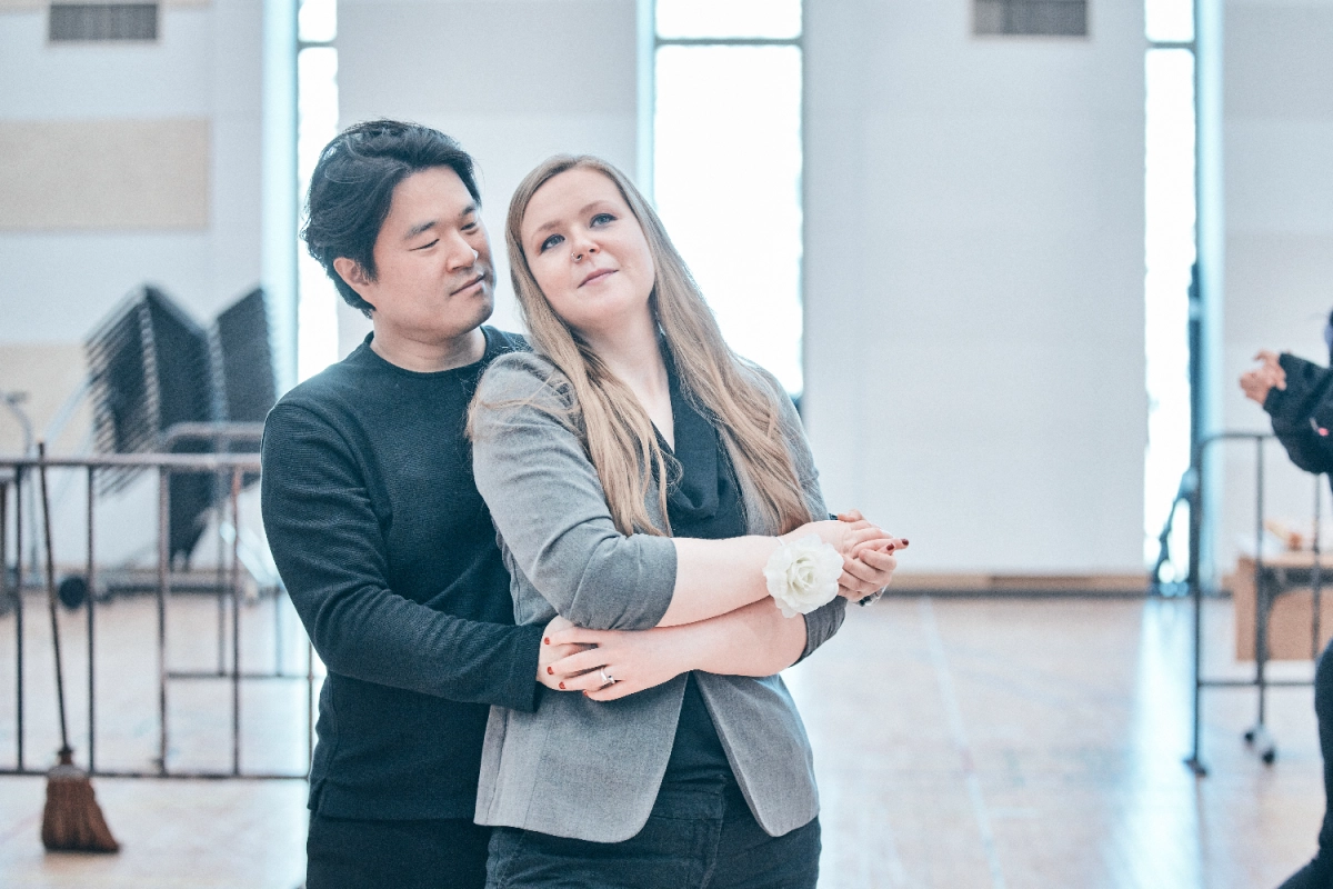 서울 예술의전당 연습동 연습실에서 김요한(왼쪽·베르테르 역)과 카리스 터커(샤를로트 역)가 국립오페라단의 ‘베르테르’의 한 장면을 보여주고 있다.