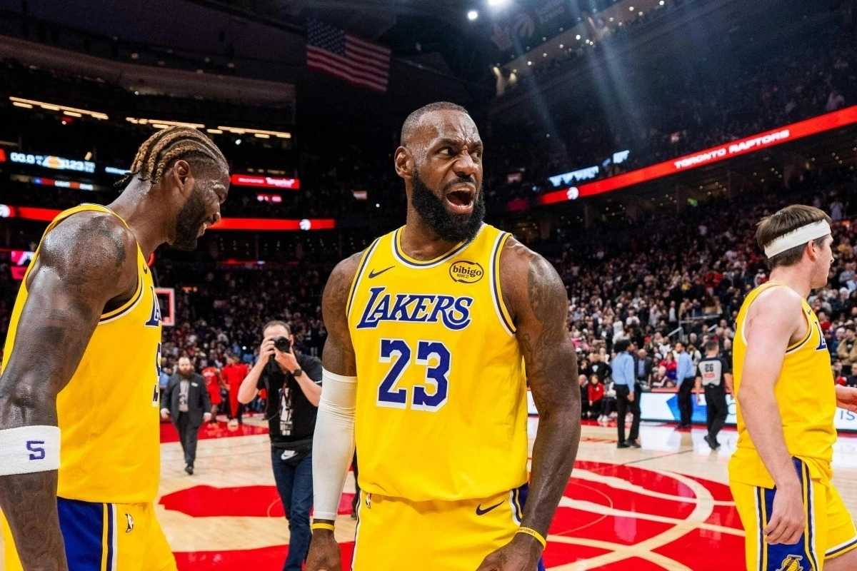 르브론 제임스(로스앤젤레스 레이커스)가 지난달 5일(한국시간) 캐나다 토론토의 스코샤뱅크 아레나에서 열린 2025~26 미국프로농구(NBA) 정규시즌 토론토 랩터스와의 원정 경기에서 123-120으로 승리한 뒤 포효하고 있다. AFP 연합뉴스