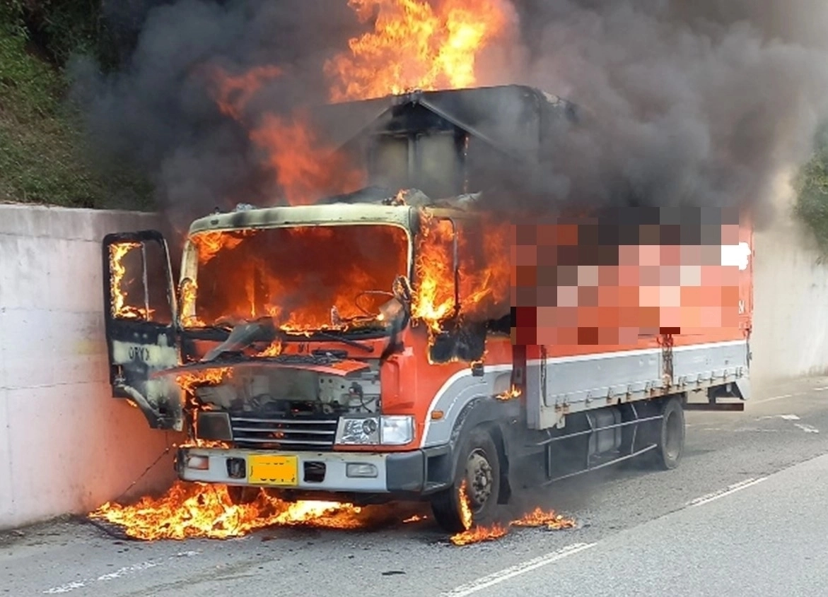 22일 오후 3시 40분쯤 경북 고령군 성산면의 한 농로에서 1t 화물차에 불이 났다.