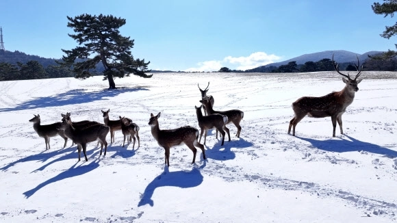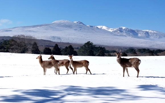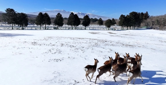 사회 [포토] 설원을 누비는 ‘꽃사슴’ 입력 2026-02-09 13:44 수정 2026-02-09 13:53 기사 읽어주기 다시듣기 글씨 크기 조절 글자크기 설정 닫기 글자크기 설정 시 다른 기사의 본문도 동일하게 적용 됩니다. 가 가 가 가 가 프린트 공유하기 공유 닫기 페이스북 네이버블로그 엑스 카카오톡 밴드 https://www.seoul.co.kr/news/society/2026/02/09/20260209800004 URL 복사 댓글 0 폭설이 그친 9일 오전 제주 한라산 제주마 방목지를 찾은 꽃사슴 무리가 설원을 누비고 있다. 온라인뉴스부 Copyright ⓒ 서울신문 All rights reserved. 무단 전재-재배포, AI 학습 및 활용 금지 Q. 기사를 끝까지 읽으셨나요? 이제 AI 퀴즈로 기사의 핵심 내용을 점검해보세요. 폭설이 그친 시점은 언제인가요? 9일 오전 9일 오후