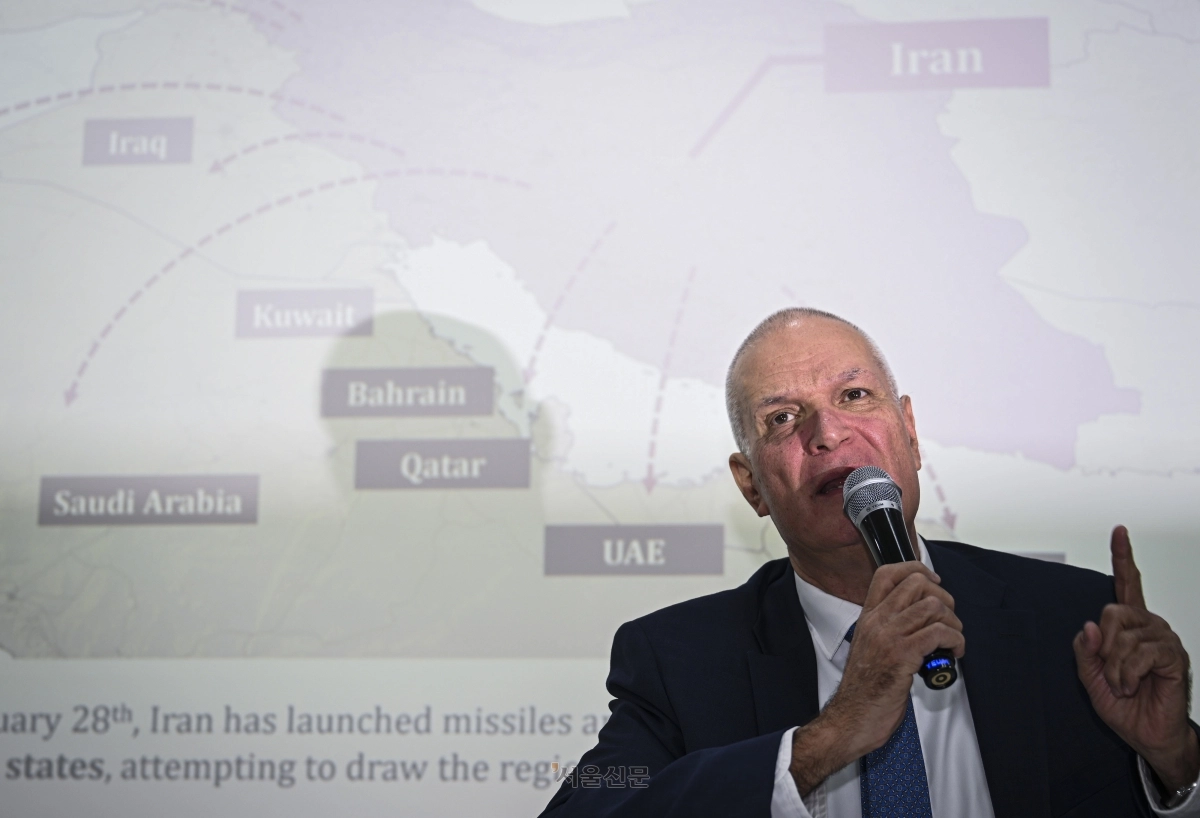 라파엘 하르파즈 주한 이스라엘 대사가 5일 서울 종로구 HJ비즈니스센터에서 중동 사태 관련 기자회견을 열고 중동 지역 내 이스라엘의 군사작전과 관련한 이스라엘 정부의 입장을 밝히고 있다. 2026.3.5 이지훈 기자