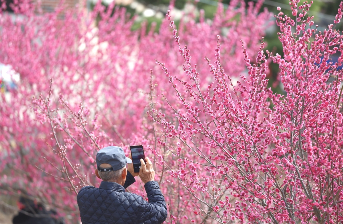 ‘개구리가 겨울잠에서 깬다’는 절기 경칩인 5일 경남 양산시 원동면 원동매화마을에 진분홍빛 매화가 활짝 피어 방문객을 사로잡고 있다. 기상청은 이날 늦은 오후 전국적으로 내리기 시작한 눈이나 비가 6일 오전 그친 뒤 찬바람이 강하게 불며 쌀쌀한 날씨가 이어질 것으로 내다봤다.