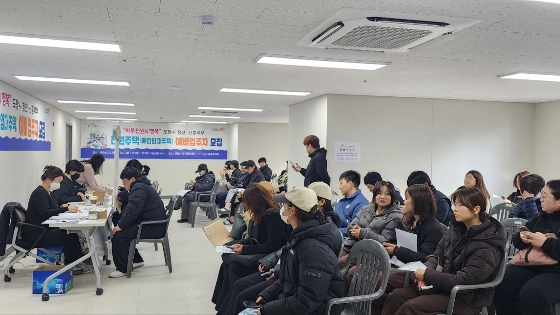 경북 포항시 주거복지센터에서 지난 5~6일 진행된 ‘포항형 천원주택’ 접수 현장. 포항시 제공