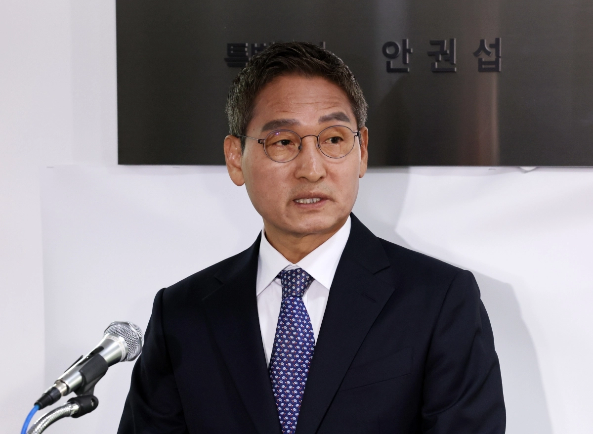 안권섭 관봉권 띠지 폐기 의혹 및 쿠팡 퇴직금 불기소 외압 의혹 진상 규명을 위한 특별검사가 5일 오후 서울 서초구 특검 사무실 앞에서 수사 결과를 발표하고 있다. 뉴시스