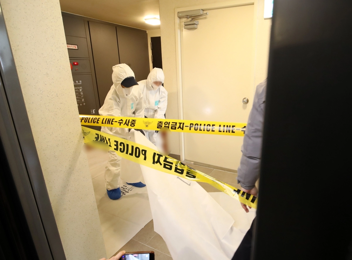 17일 부산 부산진구 한 아파트에서 50대 현직 항공사 기장 A 씨가 흉기에 찔려 숨진 채 발견된 가운데 경찰 과학수사대 관계자들이 사건 현장을 조사하고 있다. 2026.3.17 뉴스1