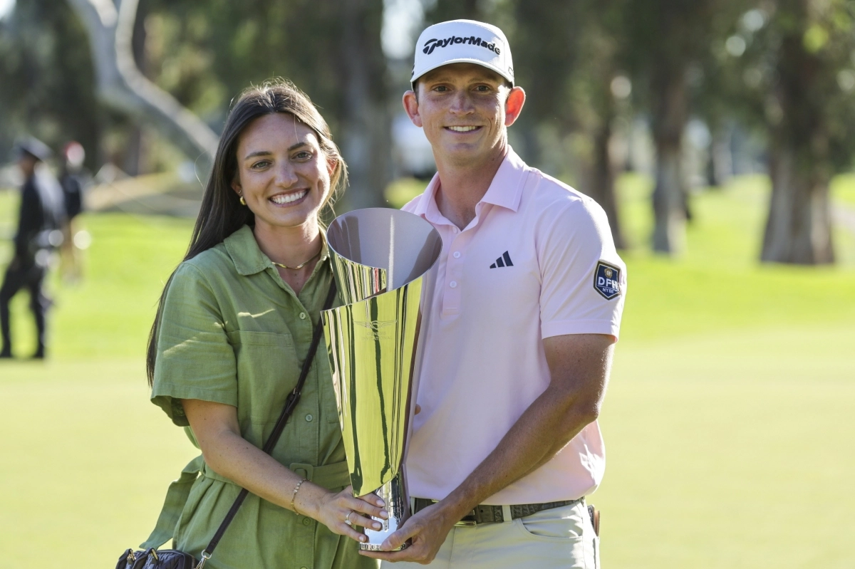 아내 헤일리와 함께 우승 트로피를 든 브리지먼.