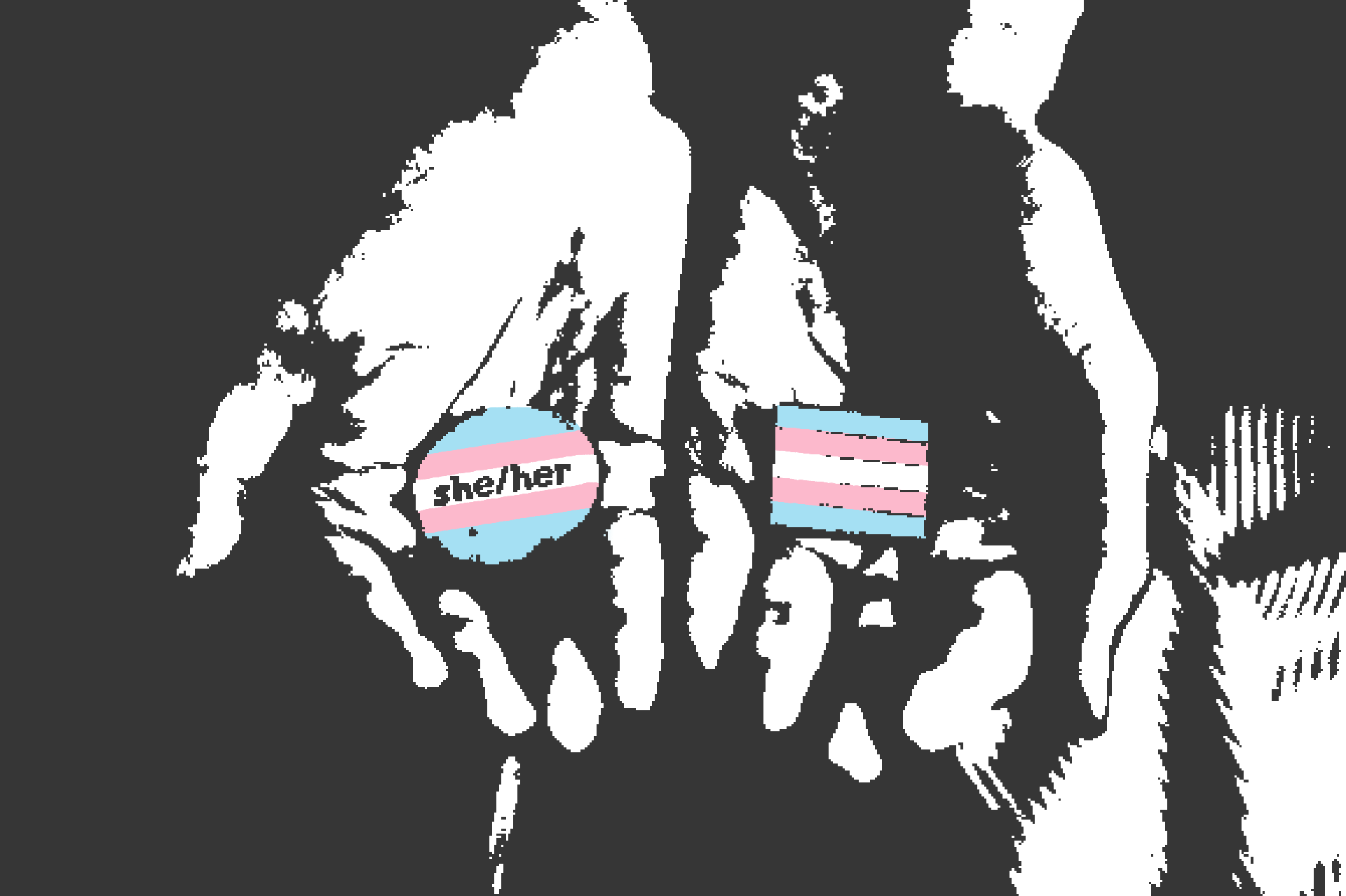 김신엽씨의 she/her 뱃지와 트랜스젠더 플래그 뱃지