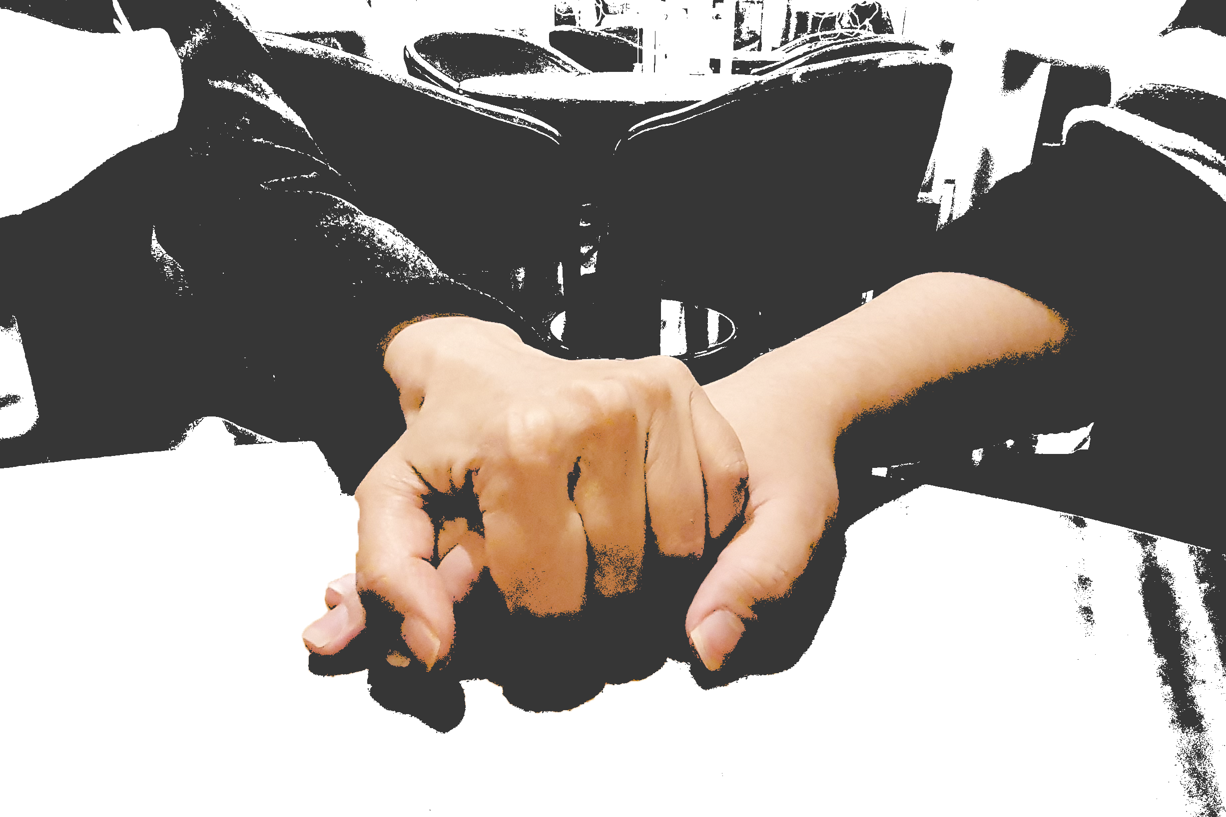 박영씨가 중학교 3학년 때 담임 선생님인 신미경(가명)씨와 손을 잡고 있다.