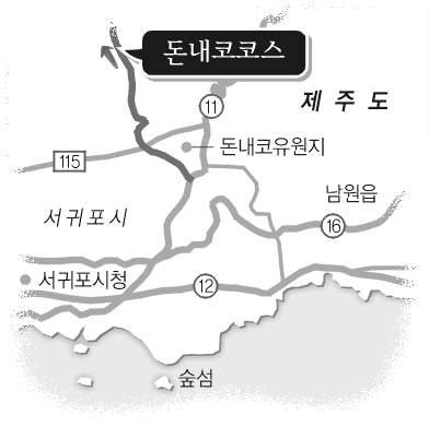 한라산 해발1300m 이상에서 시작되는 돈내코 계곡 양쪽의 숲.동백나무,종가시나무,붉가시나무 등 상록활엽수림을 포함한 1800여종의 난대식물들이 아름다운 숲을 이루고 있다.이곳에는 천연기념물 제432호인 한란 자생지이다.산에서 내려오는 맑은 물이 항시 흐른다 해서 ‘물맞이’ 장소로도 널리 알려져 있는 곳이다.서귀포시 환경녹지과 (064)735-3421.