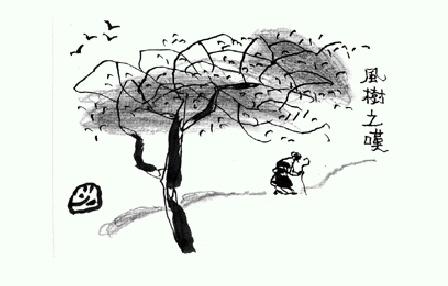 “‘서경’에 말하기를 ‘효도하라.오로지 효도하고 형제에게 우애로움으로써 그것을 시정(施政)에 반영시켜라.’하였소.이것도 정치를 하는 일이거늘 어찌 따로 정치를 할 것이 있겠소.” 공자가 남긴 풍수지탄(風樹之嘆)은 그로부터 800년 뒤 도연명(陶淵明)에 의해서 명시로 부활된다.‘가버리면 다시 돌아오지 않는 것이 세월’이란 구오자의 말을 인용하여 도연명은 그가 남긴 불후의 명작인 ‘귀거래사’에서 ‘세월은 사람을 기다려 주지 않는다.(歲月不待人)’는 문장으로 다음과 같이 읊고 있다.