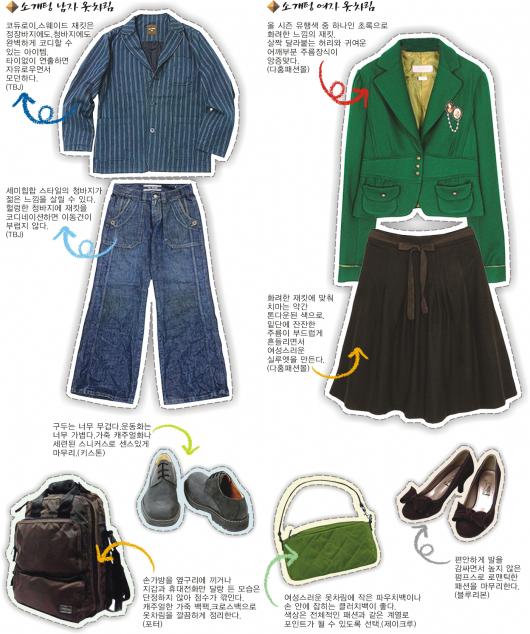 소개팅에 나간다고 최신식 유행으로만 치장하는 것은 현명하지 않다. 멋스러운 셔츠를 입더라도 너무 화려한 목걸이나 액세서리를 착용한다면 오히려 마이너스.LG패션 TNGT 박혜원 디자인실장은 “깔끔하고 세련된 인상을 남기려면 기본적인 스타일에 포인트를 줄 수 있는 핫 아이템을 잘 선택해 매치하는 것이 중요하다.”고 말했다.