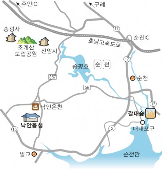 찾아가는 길은 호남고속도로 종점에서 남해고속도로로 접어든다. 송광사나들목에서 빠져나와 27번 국도를 타고 약 10㎞ 가면 된다.낙안온천(061-753-0035)이 차로 5분 거리에 있어 여행의 피로를 풀기에도 좋다. 유황과 게르마늄이 많이 함유된 국내 최고의 온천수라 해도 과언이 아니다.5000원.