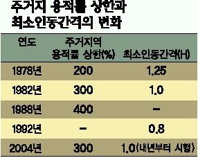 정부가 일조량 문제를 중시해 건축법상 ‘일조 등의 확보를 위한 건축물 높이제한’ 규정의 개정을 통해 현재 0.8배에서 1.0배로 늘리기로 했지만 이 역시 필요 일조량 확보에는 역부족이란 이야기다.
