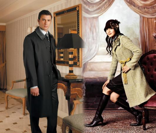 여성 코트를 멋스럽게 연출하는 데는 허리선을 얼마나 살리느냐가 포인트. 약간은 여유있는 품에 벨트나 허리끈으로 허리를 강조하는 것이 유행이다.