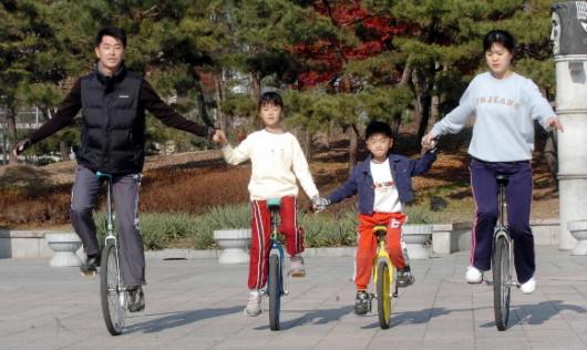 이들이 외발자전거 가족이 되기 이전의 토·일요일에는 집에만 틀어박혀 있는 전형적인 ‘방콕가족’이었다.“애들이 ‘아빠, 이번 주말 어디 안 나가?’하고 물어왔지요. 그러면 마지못해 박물관이나 고궁을 찾았고요. 하지만 이젠 일요일마다 나오니 집멀미가 싹 가셨지요.”