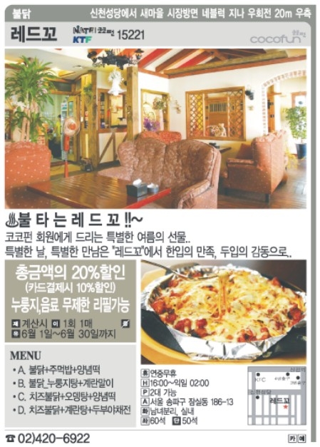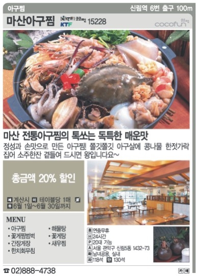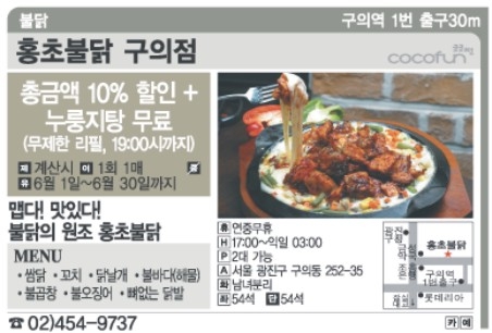 서울신문 주말매거진 We와 쿠폰 전문업체인 코코펀(www.cocofun.co.kr)은 매운 요리로 뜨거운 더위를 날릴 수 있는 ‘이열치열’ 음식점들의 할인 쿠폰을 준비했습니다.
