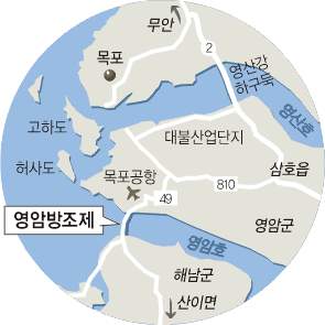 목포 IC→목포검문소→영암방면으로 좌회전→영산강 하구 둑을 지나 우회전(해남 방면)→대불국가도로(대불산업단지)→목포공항방향으로 15분→삼호조선소입구→영암호 방조제