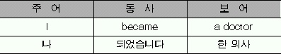 이 문장의 동사는 became이다. 그리고 동사 앞에 위치한 I가 이 문장의 주어가 된다. 의미를 순서대로 새겨보면 ‘나는 되었습니다.’가 되는데 이것만 가지고는 명확한 의미 전달이 되지 않는다. 어떻게 되었는지, 어떤 상태가 되었는지를 알려줄 필요가 있다. 여기에서는 내가 의사가 되었다는 의미를 부여하기 위해 ‘a doctor’를 동사 became 뒤 보어 자리에 두어 주어인 I의 상태를 보충 설명해 주고 있다.
