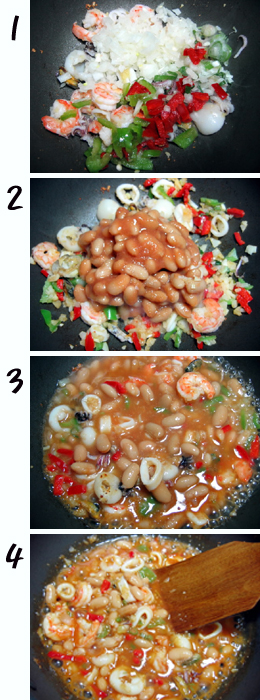 2. 해물과 야채가 적당히 익으면 포크빈을 넣고 잘 섞으면서 볶아주세요.