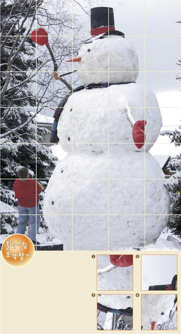 올겨울에는 참 눈이 많이 오네요. 온 세상에 골고루, 적당히∼ 오면 좋으련만, 왜 이렇게 집중적으로 오는지…. 새하얀 눈에 행복하기도 하고, 한편으로는 참 걱정스럽기도 하네요. 이번 주는 We 100호를 맞이하여 여러분에게 선물을 펑펑 쏘겠습니다. 겨울 자외선이 피부에 좋지 않은 거 알고 계시죠? 그래서 리벨로 에스테틱(02-3442-3250,www.rebellobeauty.co.kr)에서 마련한 15만원 상당의 스킨케어 프로그램 이용권, 비타민을 충전하는 ‘비타천플러스 1박스’(250㎖ 36팩·5만 4000원), 옥황토방에서 청국장을 만들어 파는 콩예원(02-990-2030,www.congyewon.com)에서 분말과 환(丸)으로 가공한 청국장세트(2만 6000원) 등을 2명씩, 모두 6명께 드립니다. 틀린 조각을 찾아 엽서에 붙여보내주세요.