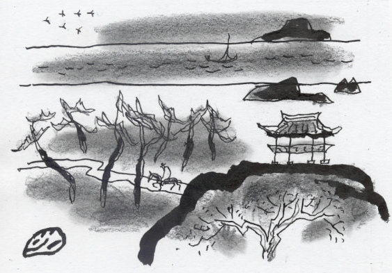 “가을바람에 풍악(금강산)을 떠나,/ 석양 무렵 상운정에 당도하니, 모래 위에는 바위들 늘어섰고,/소나무 사이에는 길이 하나 나 있구나.