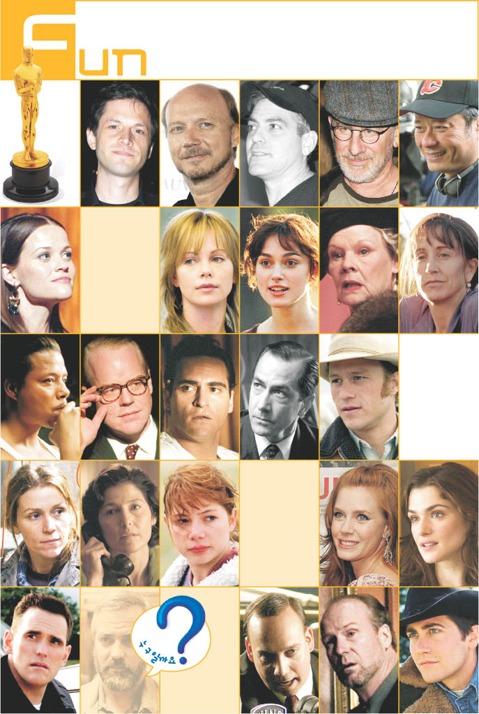 누구일까요? 이번 제78회 아카데미 시상식에 감독상과 남우조연상 후보에 오른 배우라죠.‘어느 멋진날’,‘오션스 일레븐’ 등에 등장한 이 매력남은 누구일까요. 아래 감독상 후보 사진 중 정답에 해당하는 얼굴을 오려 엽서에 붙이고, 이름을 적어 보내 주세요. 두 분을 추첨해 음식 보관은 물론 봄맞이 정리정돈에 쓸모 있는 한국크로락스 ‘그래스’를 2박스씩 보내 드립니다. 한 박스에 300㎖부터 1ℓ 용량까지 들어있어 알차게 쓸 수 있죠.