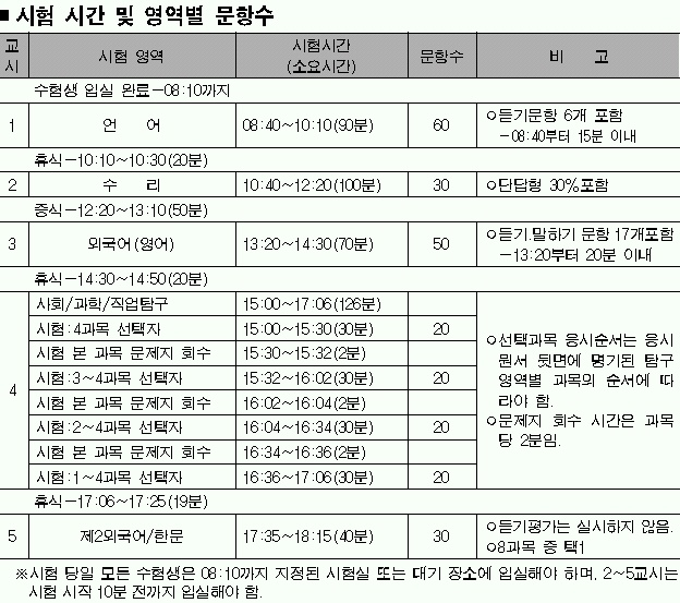 고교 졸업생의 언어적 사고능력을 객관적으로 측정할 수 있는 문항은 물론 전체적으로 변별력이 확보될 수 있는 문항을 골고루 출제한다. 사실적 사고, 추론적 사고, 비판적 사고, 창의적 사고 등 고등 사고 능력을 측정하는 데 역점을 두되 어휘와 어법 관련 내용도 낸다. 지문은 인문·사회, 과학·기술, 문학·예술, 생활·언어 등 다양한 분야에서 뽑아 독서 체험의 폭과 깊이를 파악할 수 있도록 한다.