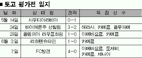 독일월드컵 아프리카 지역예선 12경기(1차 예선 포함)에서 22골 가운데 절반인 11골을 혼자 터뜨려 토고를 사상 처음으로 본선에 올려놓은 인물. 올 초 AS모나코(프랑스)에서 프리미어리그 아스널로 이적한 뒤에도 13경기에서 4골을 넣을 만큼 골 결정력이 탁월한 ‘사냥꾼’. 대한민국 월드컵축구대표팀이 16강을 저울질할 첫 상대인 토고의 경계대상 ‘0순위’ 에마뉘엘 아데바요르(22)는 그야말로 ‘군계일학’이다. 아직도 토고의 객관적인 전력을 놓고 온갖 ‘설’이 무성하지만 ‘그가 없으면 토고도 없다.’는 것만큼은 확실하다. 아데바요르의 장·단점은 무엇이고 그의 발끝을 무디게 할 방법은 또 무엇일까.