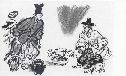 유생은 선뜻 한 손에는 물동이를 다른 한 손에는 노인으로부터 받은 분재를, 들어올리며 대답하였다.