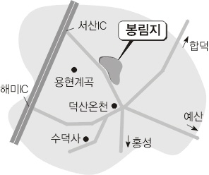 충남 예산군 봉산면 봉림리 서원산 기슭에 자리한 봉림지. 서원골 맑은 계곡수를 담수해 깨끗한 수질을 자랑한다. 잘 정리된 저수지와 주변 풍광이 어우러져 찾는 이의 마음도 절로 상큼해진다. 담수면적은 약 6만평. 제방에서 상류까지의 길이가 1.4㎞에 이르는 길다란 모양의 저수지.1920년대에 축조돼 담수령이 80여년이나 된다.