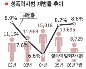 성폭력 사범의 재범죄를 줄이기 위한 정부의 대책이 아무런 효과를 거두지 못한 것이어서 충격을 더해주고 있다.