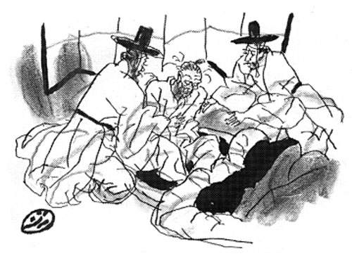 보다 못한 이덕홍이 쓰러지려는 퇴계의 몸을 부축하면서 말하였다.