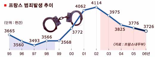 과장이 아니다. 내무부 발표에 따르면 2006년 한해 동안 프랑스 전역에서 발생한 범죄는 372만 5588건이었다. 전년도에 비해 1.3%감소한 것이지만 상해·폭행·강간·약취 등 개인에 대한 범죄행위는 총 43만 4183건으로 2005년보다 5.5% 증가했다.