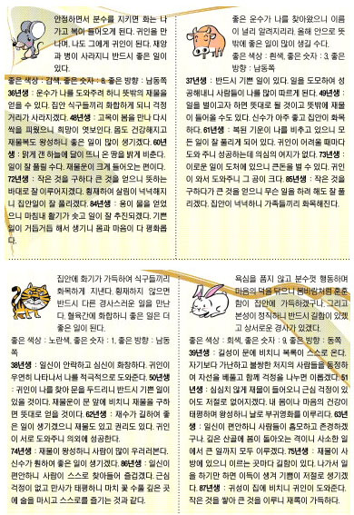 정해년(丁亥年) 돼지띠해는 사주명리학상 입춘이 들어오는 양력 2월4일 오후 2시17분부터 2008년 2월4일 오후 8시 사이에 태어나야 돼지띠에 해당된다. 황금돼지해 등 이런저런 속설로 올해는 유례없는 돼지띠 출산러시가 이어질 전망이다. 아울러 정해년 돼지띠는 재물복과 먹을 복이 더욱 많다고들 믿는다. 어쨌든 우리 아이가 복이 많은 해에 태어나 좋은 삶을 산다고 믿고 아이를 키워 나간다면 기분 좋은 일이다. 반가운 귀향길에 우리 가족의 올 한해 운세를 얘기하며 즐겁게 떠나 보자.