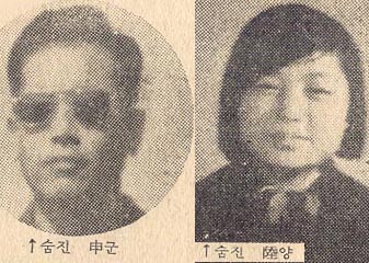 지난 14일 하오 4시쯤 물놀이를 나간채 돌아오지 않은 총각과 처녀. 두사람은 이룰 수 없는 사랑을 비관했음인지 고요한 호수에 부둥켜 안은채 수중고혼이 된 신랑 신정구(申正求·22·춘천시 사농동2구6)군과 신부 육영자(陸英子·20·춘천시 소양로1가46)양-.