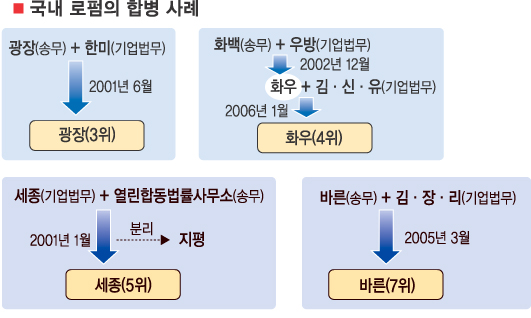 이에 따라 외국 로펌과 경쟁력을 확보하기 위한 국내 로펌 빅뱅의 신호탄이 아니냐는 해석도 나온다. 로펌 합병은 시장개방 시기가 다가올수록 가속화될 것으로 전망된다.