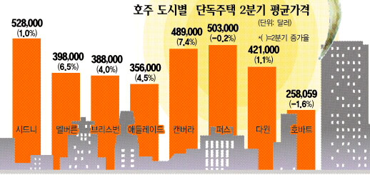 최근 발표된 2007년 2분기 통계에 따르면 시드니의 단독주택 평균 가격은 52만 8000달러(약 4억 1700만원)를 기록해 호주에서 가장 비싼 것으로 나타났다. 광산특수를 누리는 퍼스가 50만 3000달러를 기록해 뒤를 이었다. 다윈은 42만 1000달러, 멜버른은 39만 8000달러, 브리스번 38만 8000달러, 애들레이드는 35만 6000달러, 호바트는 25만 8059달러를 각각 기록했다.