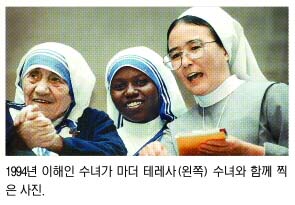 이번에는 인터뷰 장소를 이 수녀의 글방으로 옮겼다.10평 남짓한 방안에 들어서자 허브 향기가 가득했다. 광안리 바닷가에서 왔음 직한 조가비, 인근 산에서 따온 솔방울, 흑백의 세월을 듬뿍 담은 여러 흔적들, 마더 테레사 수녀와 찍은 사진도 눈에 들어왔다.