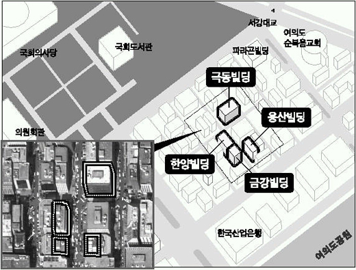 금강빌딩 맞은 편의 용산빌딩은 한나라당 경선 때까지 ‘이명박 캠프’가 있던 곳이다. 이명박 당선자는 이곳에서 경선 승리의 기쁨을 맛봤고 바로 대각선에 위치한 한양빌딩에서 대선 승리의 영광을 차지한 셈이다. 이 당선자가 경선에 승리한 뒤 경선 캠프가 축소되면서 탈락한 일부 요원들이 용산빌딩 건너편 금강빌딩 2층의 맥주집에서 분루를 삼키며 권토중래를 꾀했다는 얘기도 들린다.