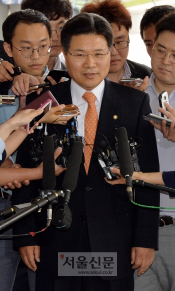 8일 오후 홍문종 새누리당 의원이 경남기업 관련 의혹에 관련해 서울 고법 특별수사팀(팀장 문무일 검사장)에 소환되고 있다. 2015.6.8 안주영 기자 jya@seoul.co.kr