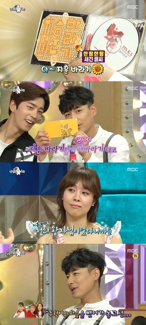MC들은 “이지훈이 여자친구가 있었던 거냐”고 추궁하기 시작했고 이지훈은 “그 때 핑클 멤버들에게 욕을 많이 먹었다. ‘주현이 마음을 뺏어 놓고’라는 이유였다”고 말해 웃음을 자아냈다.