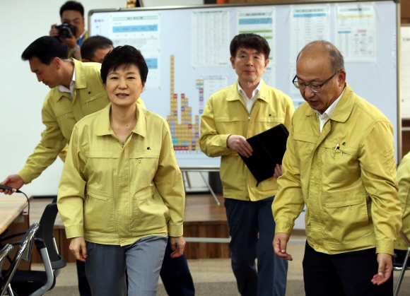 박근혜 대통령이 17일 오후 세종시 보건복지부 중앙메르스관리대책본부를 방문해 둘러보고 있다. 2015. 06. 17