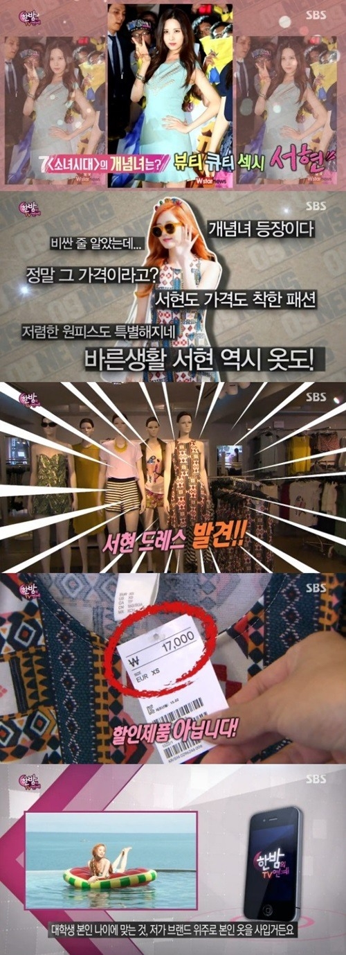 제작진이 직접 확인한 결과, 서현 원피스의 가격은 1만 7000원으로 밝혀졌다.서현 소속사는 “해당 의상은 서현이 직접 산 것이다. 원래 서현이 비싼 옷을 사 입지 않는다. 실제로 경제 개념이 있다”고 밝혔다.