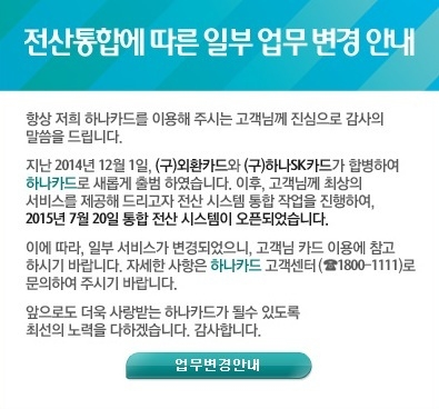 옛 하나SK카드와 외환카드의 통합 전산시스템이 운영된 첫날부터 결제 오류가 발생했다.