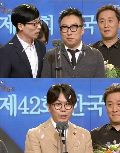 이날 ‘무한도전’의 김태호 PD는 모든 멤버들과 함께 무대에 올라 의미를 더했다.
