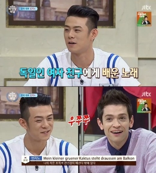 의장단은 곧바로 “(여자친구와) 독일어로 얘기하느냐?”고 물었고 빈지노는 “주로 영어로 대화한다”면서 “저도 독일어를 물어보고 그 친구도 한국어를 배우고 있다”고 설명했다.