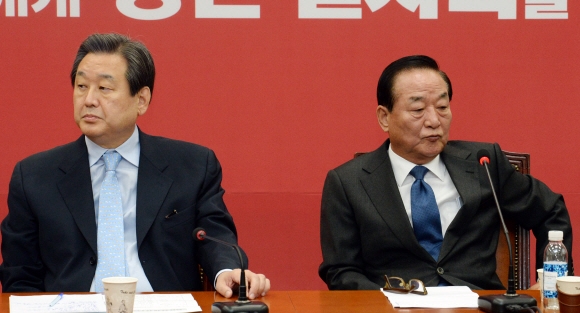새누리당은 5일 오전 국회에서 최고위원회의를 열고 국민경선제등 정치 현안에 대하여 논의했다.김무성 대표와 서청원 최고위원간에 냉기류가 흐르고 있다. 김명국전문기자 daunso@seoul.co.kr