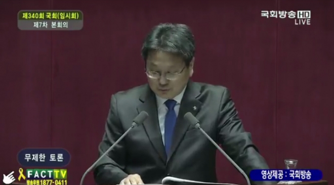 강 의원이 두 시간쯤 발언을 이어가다 잠시 멈추자 사회를 보고 있던 이석현 부의장이 “강 의원이 발언을 한 지 꼭 두 시간이 됐다”면서 “많이 힘이 들 텐데 제가 잠깐 말을 하겠다”며 입을 열었다.