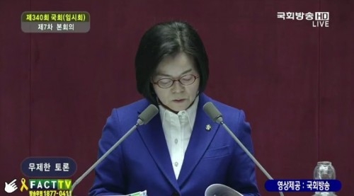 테러방지법을 막기 위한 야당의 무제한 토론(필리버스터)이 나흘째 이어진 가운데 15번째 주자로 전순옥 더불어민주당 의원이 단상에 올랐다.