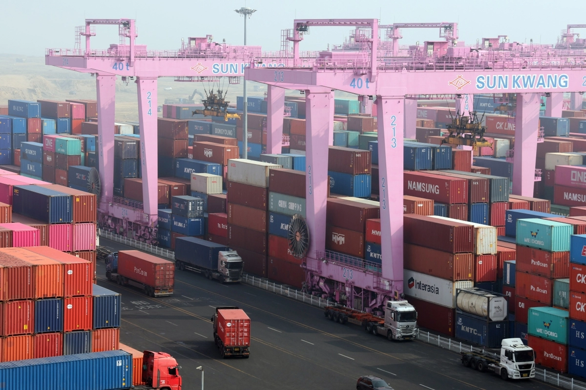 사진은 11일 인천신항 컨테이너 터미널에 수출입 컨테이너가 쌓여 있는 모습. 뉴스1